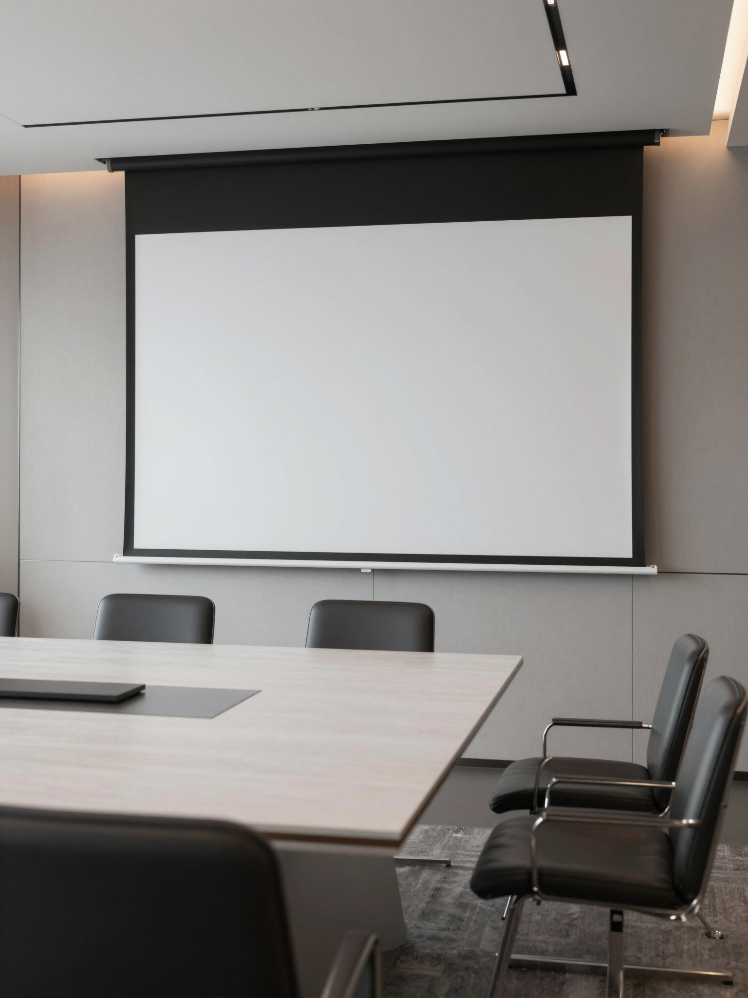 Soluciones versátiles de pantallas de proyección para conferencias, ferias comerciales y eventos corporativos de alto impacto visual.